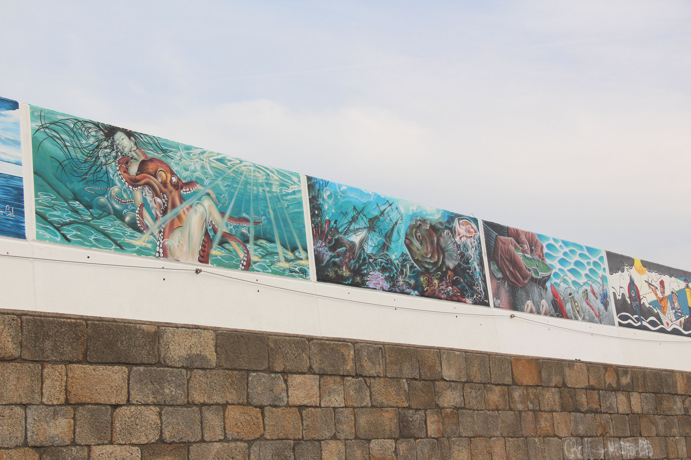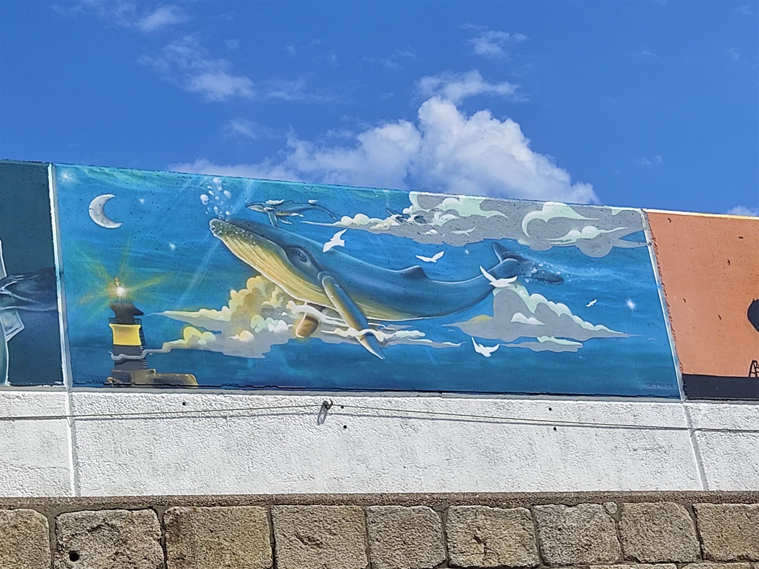 Estes murais pertencen á exposición Amarte, que leva desde hai tempo reunindo en Burela a varios artistas durante unha semana ao ano para a realización destas obras. Na súa temática destacan as baleas, en recordo á importancia que tivo a caza destes cetáceos en Burela entre os séculos XIV e XVII; a multiculturalidade desta vila e, por suposto, o bonito.